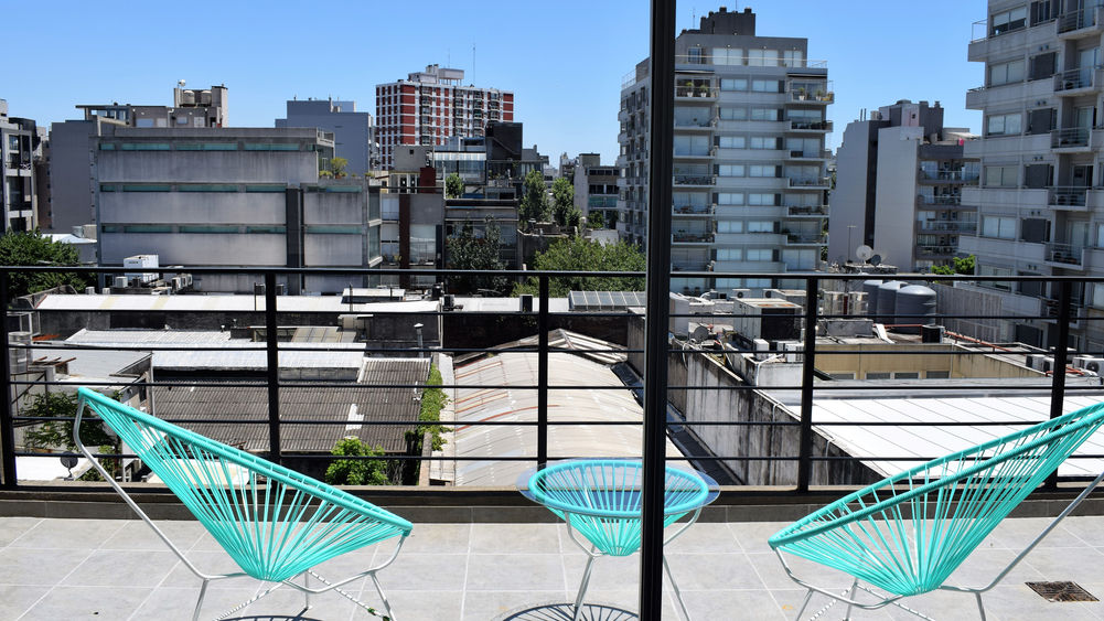 Balcón aterrazado con vista panorámica y dos sillones paras disfrutar de atardeceres o noches estrelladas.